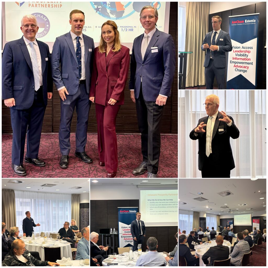 On October 9, AmCham Estonia was pleased to host a  Breakfast Meeting with the Delaware Delegation yesterday at Swissotel Tallinn. The event, organized in collaboration with the Delaware Prosperity Partnership, brought together Estonian business leaders and start-ups  for an engaging discussion on why Delaware stands out as a premier gateway for European companies looking to enter the U.S. market.